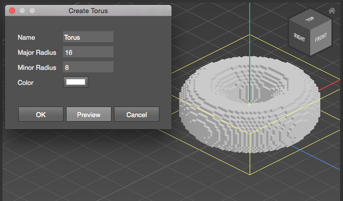Qubicle offers a variety of standard primitive shapes to begin your Voxel Matrix.