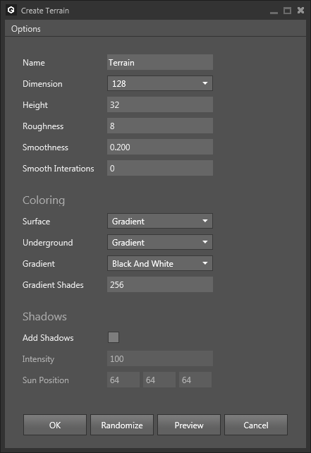 Create > Terrain - Adjust Options