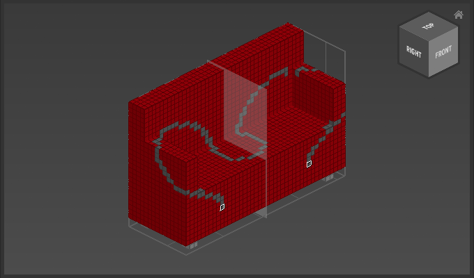 Mask mode enabled, only unselected voxels are colored gray by a pencil stroke: