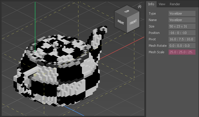Qubicle's built-in Voxelizer allows you to easily convert OBJ meshes into voxel objects.