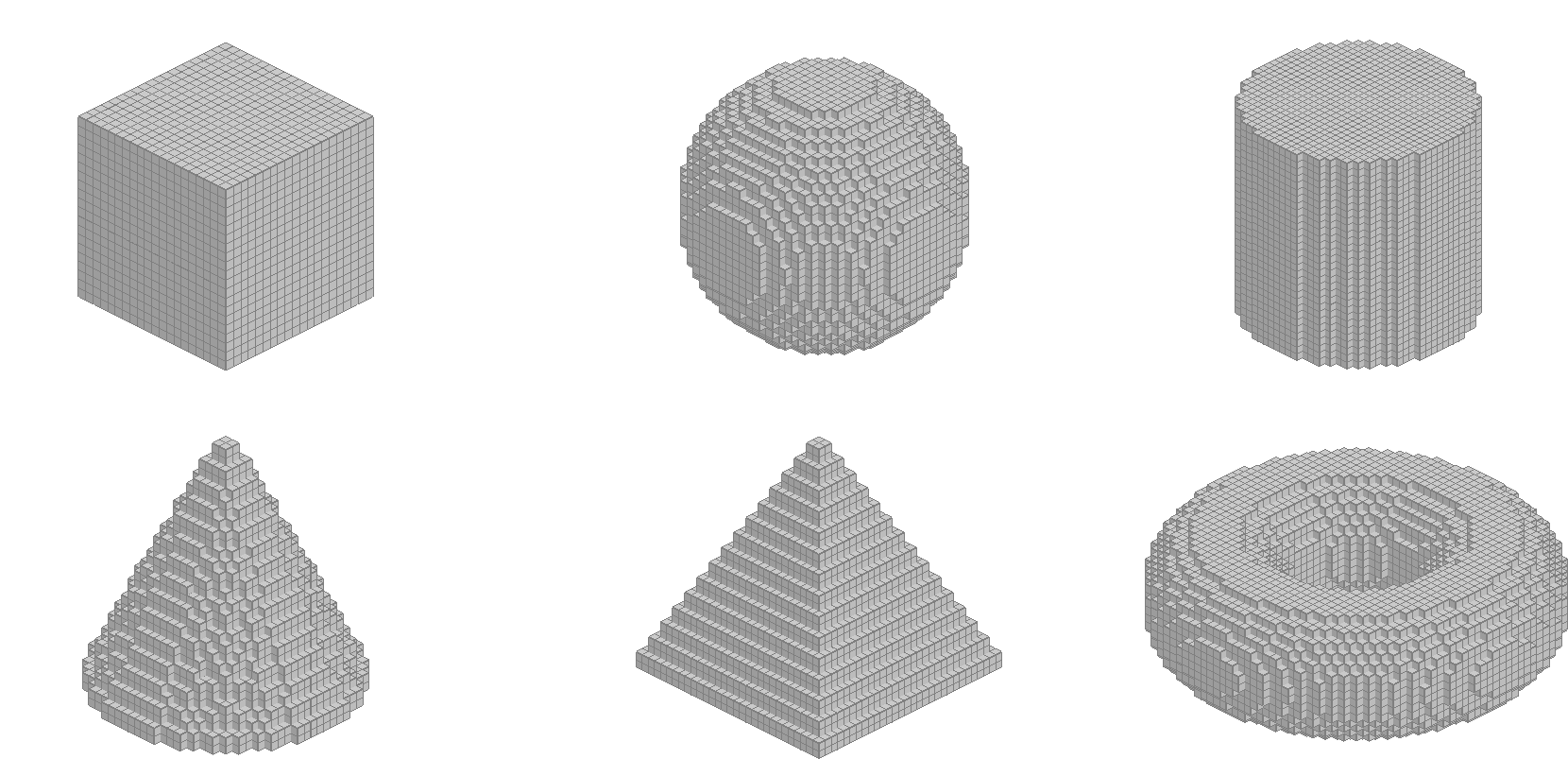 Qubicle offers a variety of standard primitive shapes to begin your Voxel Matrix.