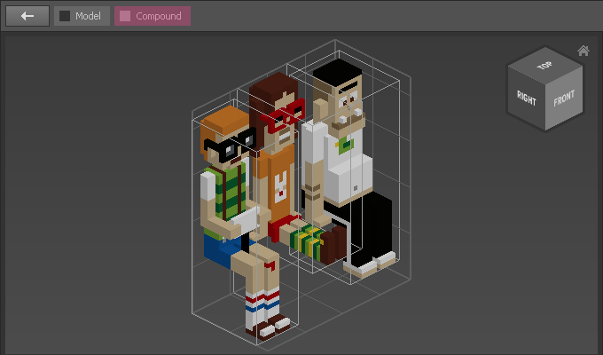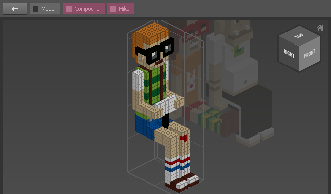 To go back to the Compound or the Model either double-click an empty area or click on one of the corresponding buttons of the Header Bar.